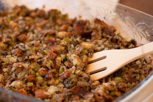 Just when you thought you found the perfect vegetarian stuffing recipe, it gets better. We also have a vegetarian, gluten-free gravy you can pour over it! Delicious.